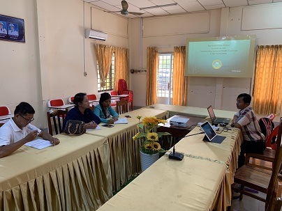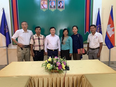 2018年10月、カンポット市役所での市長を交えたミーティング。Dr.Khun Mavは、今年10月にカンポット保健省のFDA局長に就任、協力活動を継続発展している。